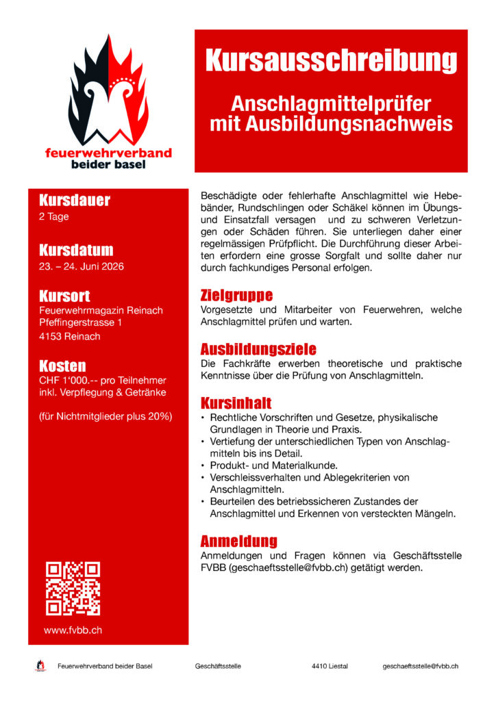Kursausschreibung Anschlagmittelprüfer